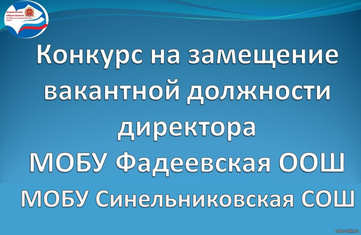 Объявление о приёме документов для участия в конкурсе на замещение вакантной должности руководителя муниципальной образовательной организации Октябрьского муниципального округа
