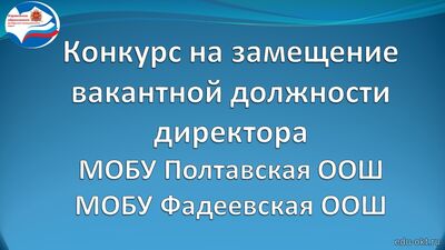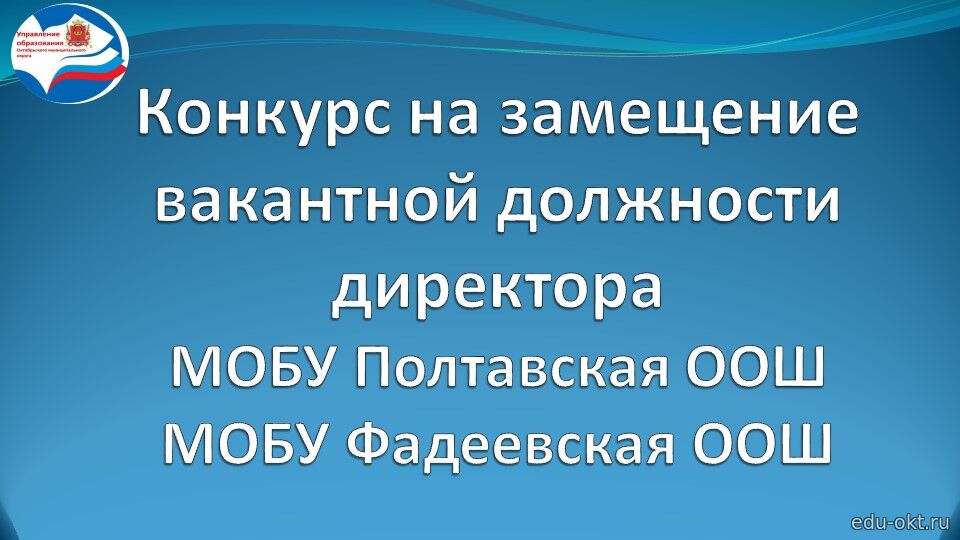 МКУ «Управление образования» объявляет два конкурса на замещение вакантной должности (далее - Конкурс): Первый конкурс - на должность директора муниципального общеобразовательного бюджетного учреждения «Чернятинская основная общеобразовательная школа Октябрьского муниципального округа». Ознакомиться с информацией об образовательном учреждении можно на официальном сайте http://www.chernyatinoschool.edusite.ru. Второй конкурс - на должность директора муниципального общеобразовательного бюджетного учр ... Читать дальше » |